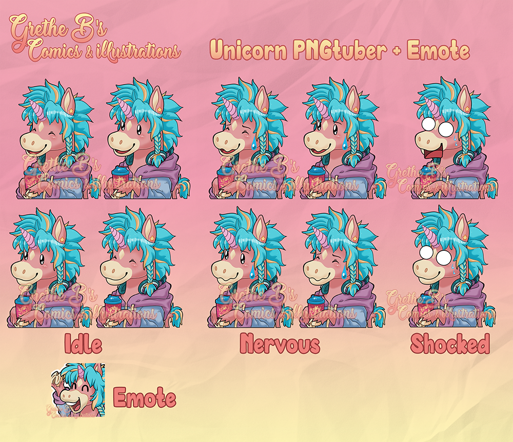 Pastel Unicorn PNGtuber that can be used on Twitch, Youtube, Discord, and other streaming platforms!