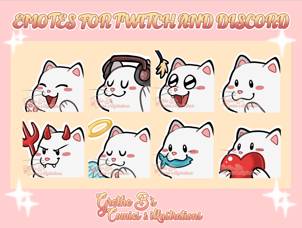 White Cat Twitch & Discord Emote pack (8 Emotes)
